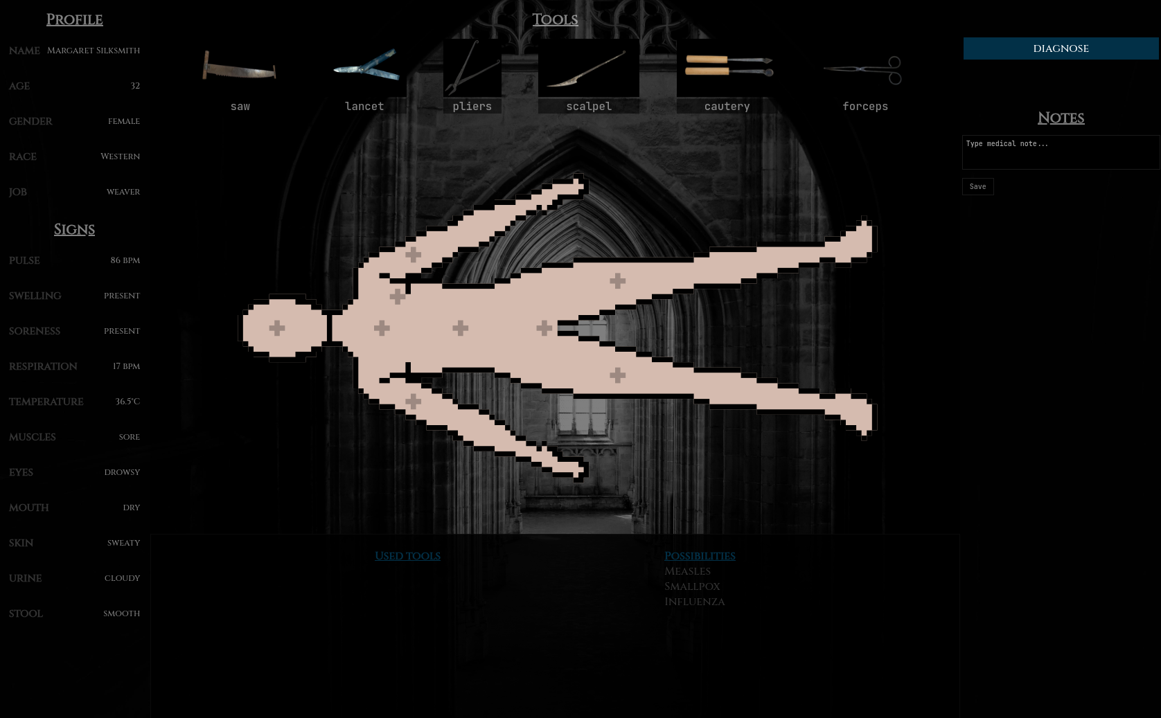 You're a run-away entering into a new town, suspected as some exiled man/woman. Pose as doctor who was lost at sea and want to be the new village doctor
